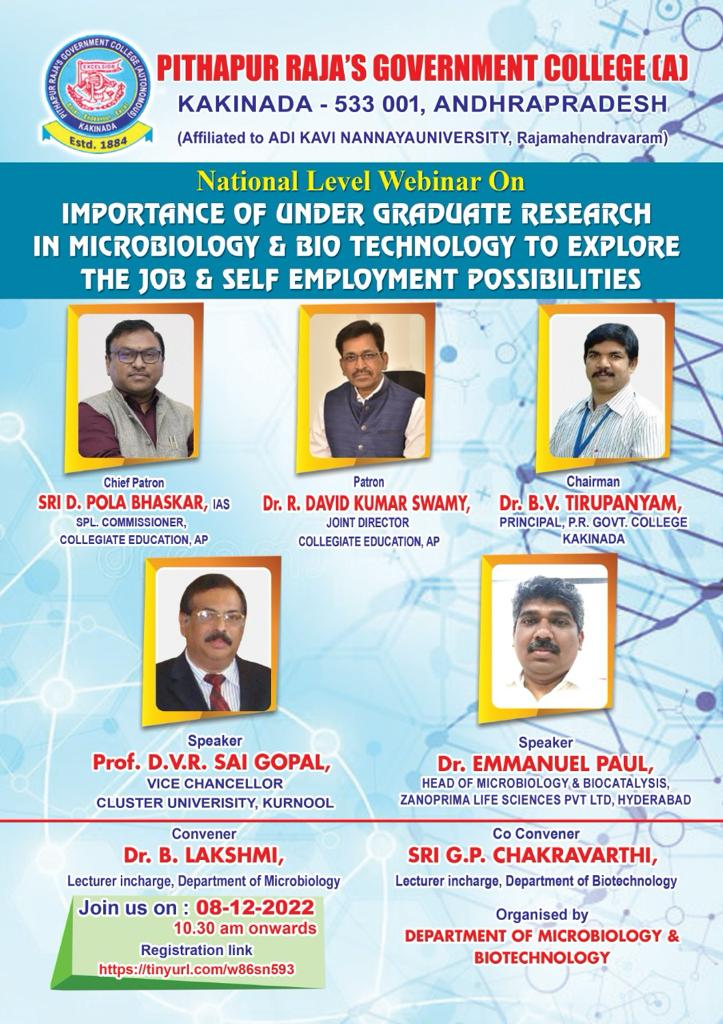NATIONAL LEVEL WEBINAR ON " IMPORTANCE OF UNDERGRADUATE RESEARCH IN MICROBIOLOGY AND BIOTEHNOLOGY TO EXPLORE THE JOB & SELE EMPLOYMENT POSSIBILITIES